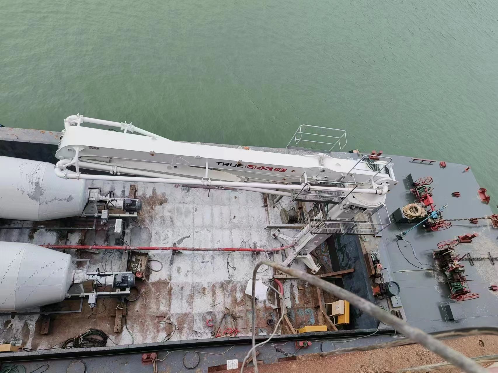 船載式混凝土布料機是一款碼頭、跨海大橋、橋墩等復(fù)雜項目施工混凝土泵送設(shè)備,把布料機安裝在船上或者甲板上進(jìn)行固定安裝,把攪拌罐放置在船艙內(nèi)采用拖泵進(jìn)行泵送混凝土;省時省力、高效便捷的泵送方式。